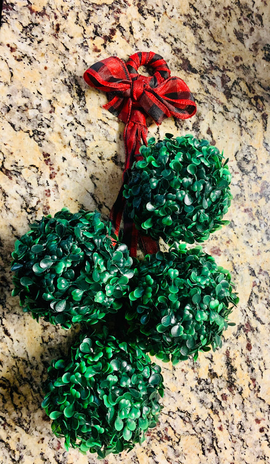 Greenery Sphere Door Hanger with Red and Black Buffalo Check Ribbon | Boxwood Topiary | Door Swag