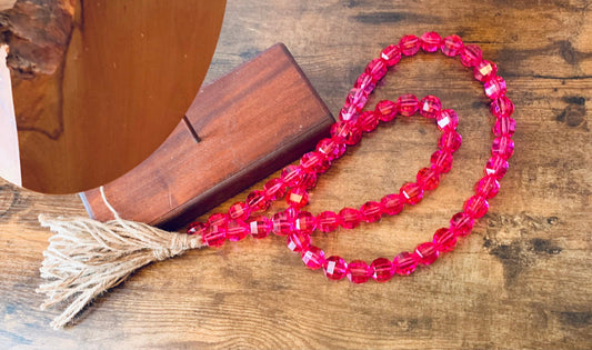 Gemstone Beaded Garland | Pink Faucet Crystal Garland with Tassels | Crystal Bead Garland