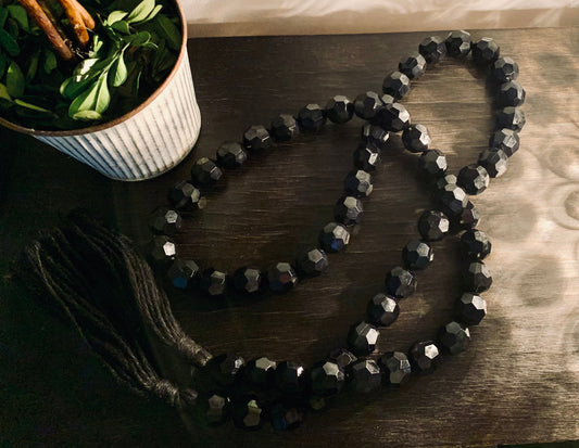 Gemstone Beaded Garland | Black Faucet Crystal Garland with Tassels
